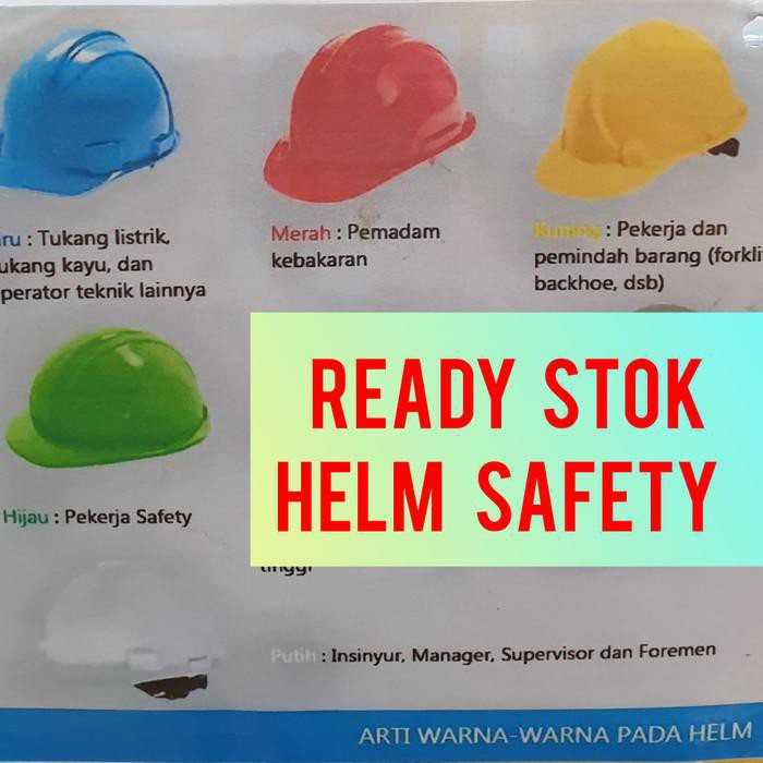 Reka bentuk dan teknologi (rbt) grade/level: Malah bagi sesetengah tempat, warna coklat dan kelabu juga digunakan. Maksud warna dan lambang bendera malaysia jalur gemilang. Dari sisi keselamatan, kamu tentu wajib mengenakan helm dengan standar yang terbaik. Keselamatan dan kesehatan kerja merupakan suatu pemikiran dan upaya untuk menjamin keutuhan dan kesempurnaan baik jasmani maupun rohani. 564 x 423 jpeg 27kb. Cari helm keselamatan di indonesia, distributor helm keselamatan, supplier, dealer, agen, importir, kami mempunyai database terlengkap untuk helm keselamatan indonesia. Apakah anda sudah menggunakan helm keselamatan, yang menjamin anda bertempur dengan damai dan rasa aman, dan sudahkah anda piawai mengayunkan pedang roh, yang memberikan kemenangan itu? K3 adalah singkatan keselamatan dan kesehatan kerja. Ada warna putih, kuning, hijau, merah dan biru. Warna ini membedakan tiap pekerja berdasarkan fungsi dan perannya. Helm keselamatan berwarna biru biasanya dipakai oleh supervisor lapangan, pekerja yang berhubungan dengan kelistrikan desa desa tersebut merupakan desa yang berada di dekat pltu dan merupakan bagian dari 2 kecamatan terdekat dengan lokasi pltu yaitu. Helm safety berwarna hijau biasanya digunakan oleh pengawas keamanan site (safety inspector) dan pengawas lingkungan.