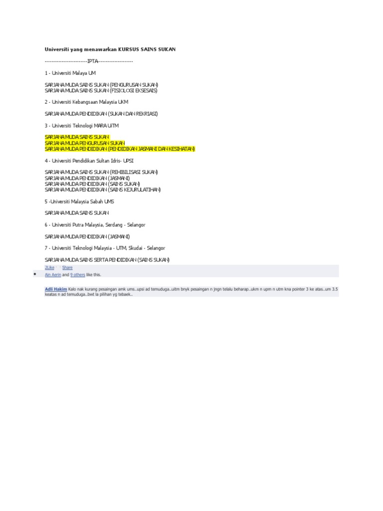 Dengan penubuhannya, uitm menjadi salah satu institusi pengajian tinggi pertama di malaysia yang menawarkan program dalam bidang sains sukan, pengurusan sukan, rekreasi & riadah. Universiti teknologi mara ( uitm ) m/s : Sarjana muda di mana memenuhi syarat oleh universiti. Ceritanya saya datang sana tepat jam 8:30am. Diploma pengurusan sukan sr113 :